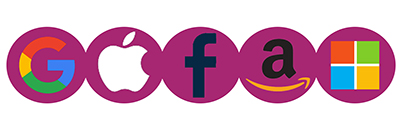 Acronyme des géants du Web, Google, Apple, Facebook, Amazon, Microsoft, qui dominent le marché du numérique.